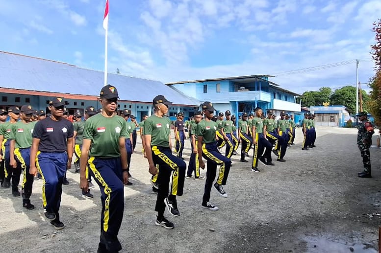 Babinsa Koramil Timika Latih Baris-Berbaris Siswa SMA Taruna Mimika