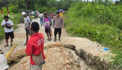 Tanah Amblas Akibat Luapan Kali Tami, Polres Keerom Gerak Cepat Lakukan Penimbunan