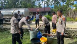 Polri Hadir untuk Masyarakat, Polres Keerom Bersama Sat Brimob Polda Papua Salurkan Bantuan Air Bersih Pasca Banjir di Kampung Yanama