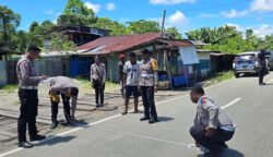 Sat Lantas Polres Keerom Laksanakan Olah TKP, Ambil Barang Bukti dan Serahkan Bantuan Sembako Kepada Keluarga Korban Laka Lantas