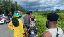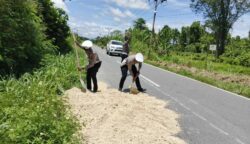 Sat Lantas Polres Keerom Peduli Keselamatan, Timbun Jalan Amblas di Jalur Rawan Kecelakaan