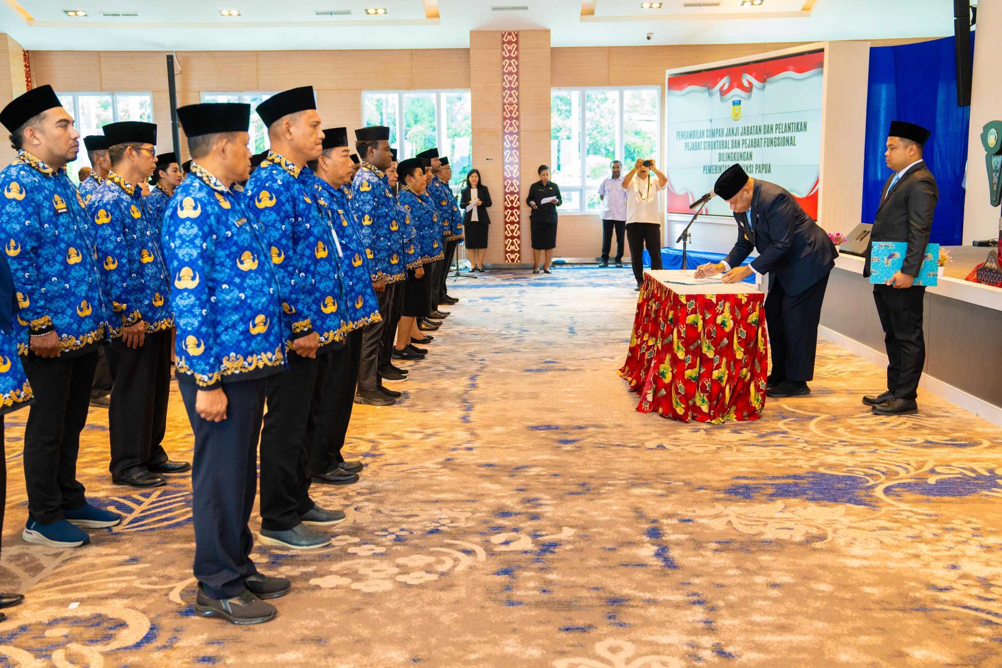 Pelantikan berlangsung di Aula Lukmen Kantor Gubernur Papua, Kota Jayapura pada Rabu (18/2/2026). Sebanyak 36 pejabat yang dilantik terdiri dari 24 pejabat struktural dan 12 pejabat fungsional dari berbagai jenjang jabatan.