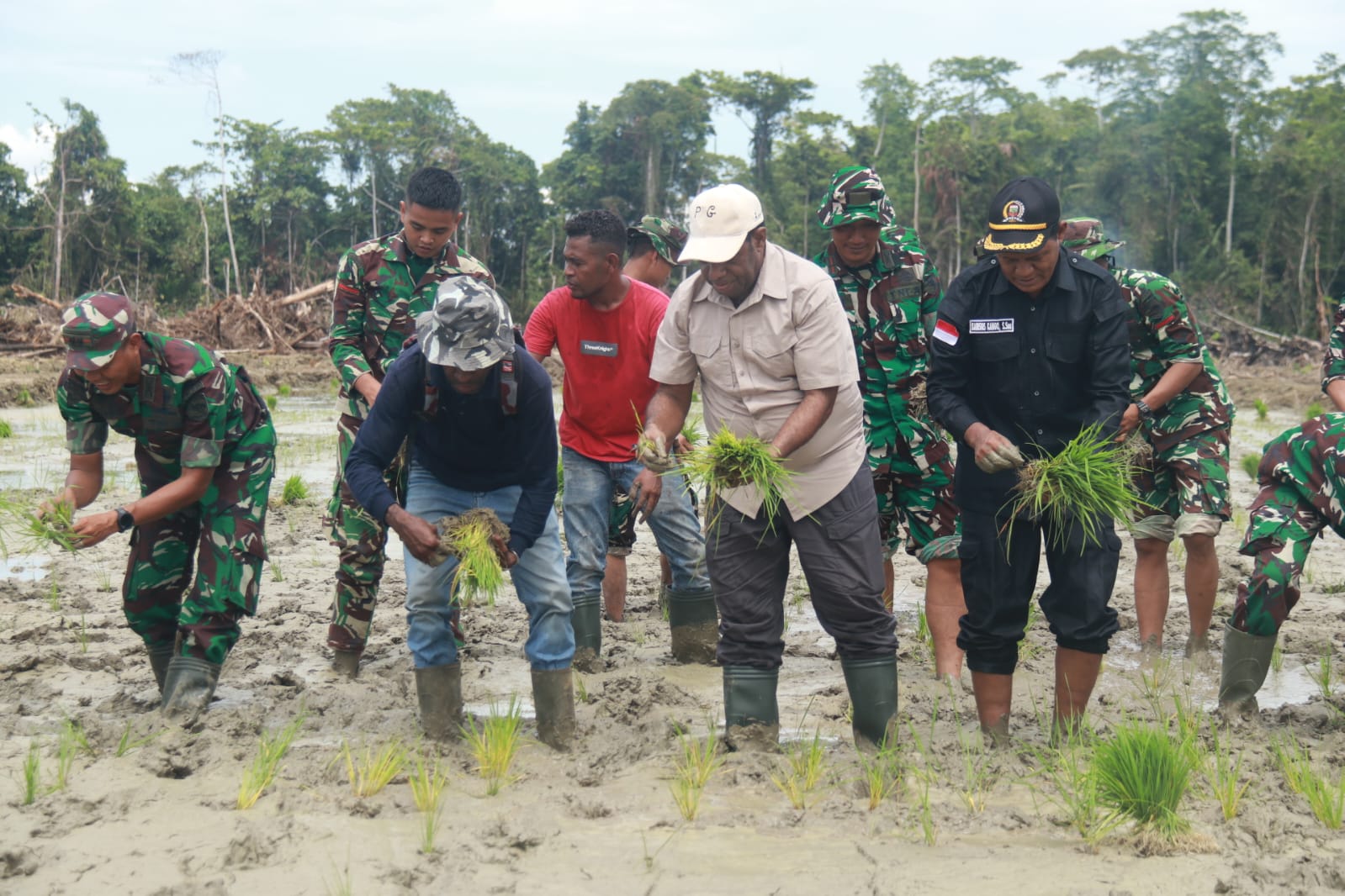 “Hari ini, kita tanam padi perdana di lahan seluas 210 hektare yang telah di programkan pada tahun 2025 di 8 lokasi Distrik Skanto, kata orang no 1 Kabupaten Keerom tersebut.