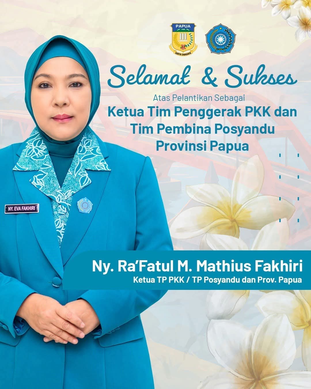 Dengan semangat kebersamaan dan kerja nyata, kehadiran Ny. Eva Mathius Fakhiri di pucuk kepemimpinan TP PKK Papua diharapkan menjadi motor penggerak perubahan menuju keluarga Papua yang sehat, berdaya, dan sejahtera.(*)