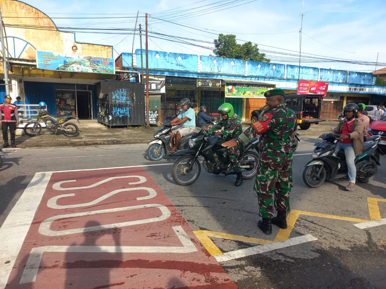 Kegiatan ini dilakukan pada pagi hari, saat arus kendaraan di sekitar Jalan Yos Sudarso cukup padat. Dengan penuh tanggung jawab, kedua Babinsa berdiri di tepi jalan utama untuk memastikan para pelajar dapat menyeberang dengan aman menuju sekolah.