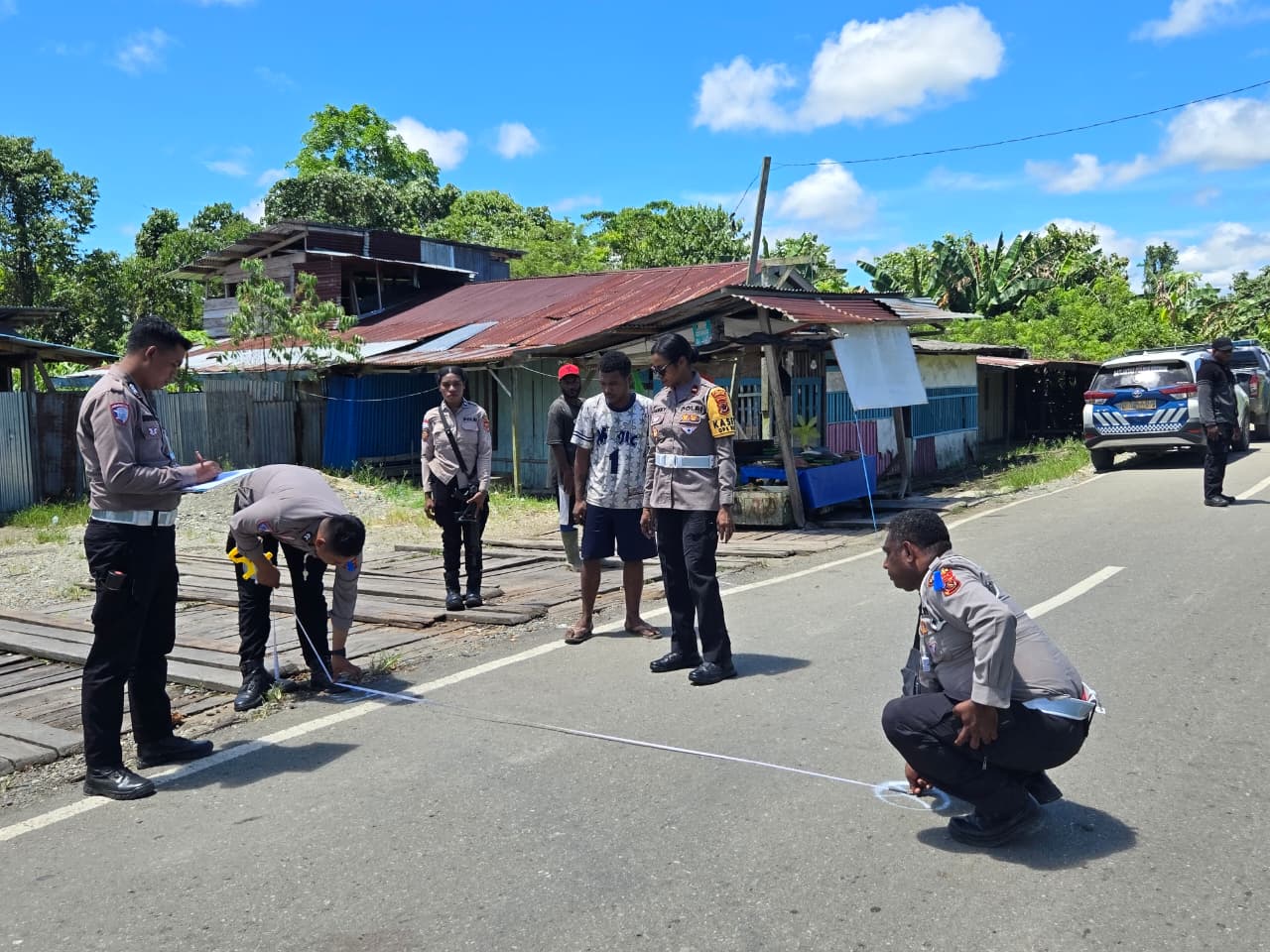 Sat Lantas Polres Keerom Laksanakan Olah TKP, Ambil Barang Bukti dan Serahkan Bantuan Sembako Kepada Keluarga Korban Laka Lantas