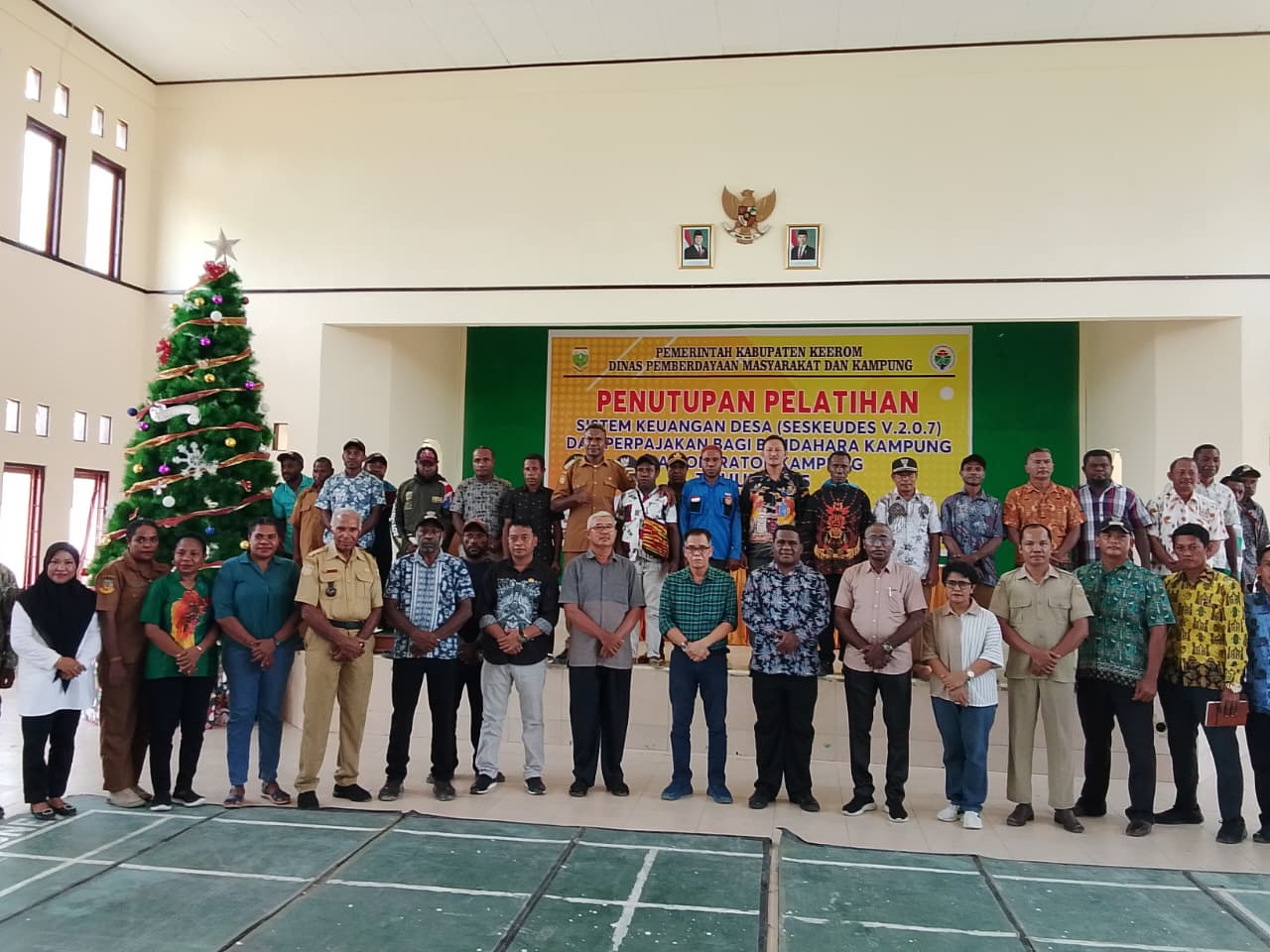 BUMI CENDERAWASIH.ID – Mewakili Bupati Keerom Piter Gusbager, PJ. Sekretaris Daerah Drs. Stenly N. Moningka menutup secara resmi Pelatihan Sistem Keuangan Desa (Seskeudes V.2.0.7) dan Perpajakan Bagi Bendahara dan Operator Kampung tahun 2025, Senin (22/12/25), di Gedung Pramuka Arso Swakarsa.